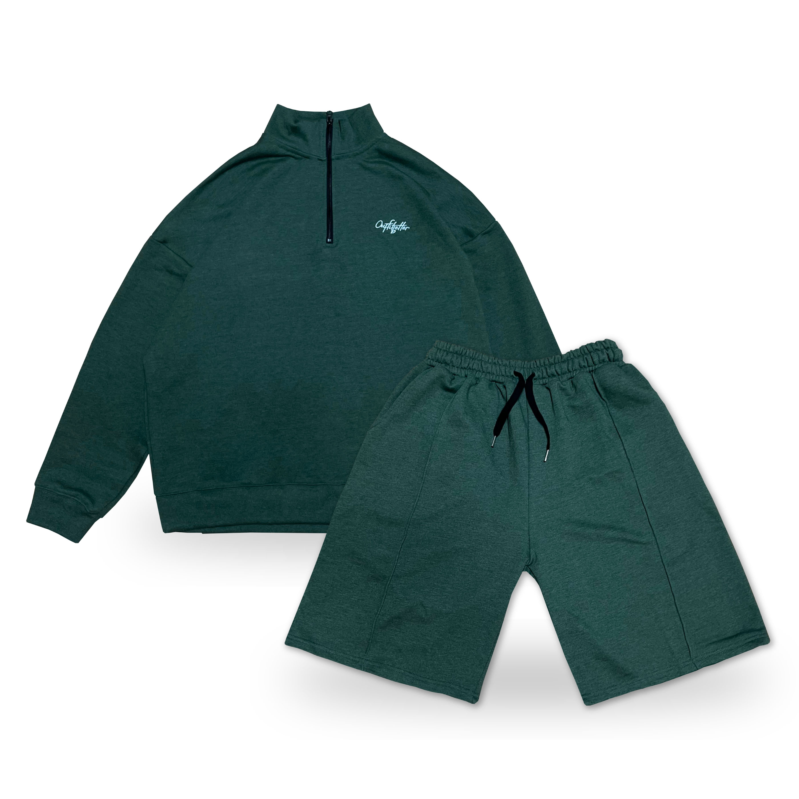 HALF ZIP UP & BERMUDA HALF PANTS [GREEN] - 아웃핏베럴