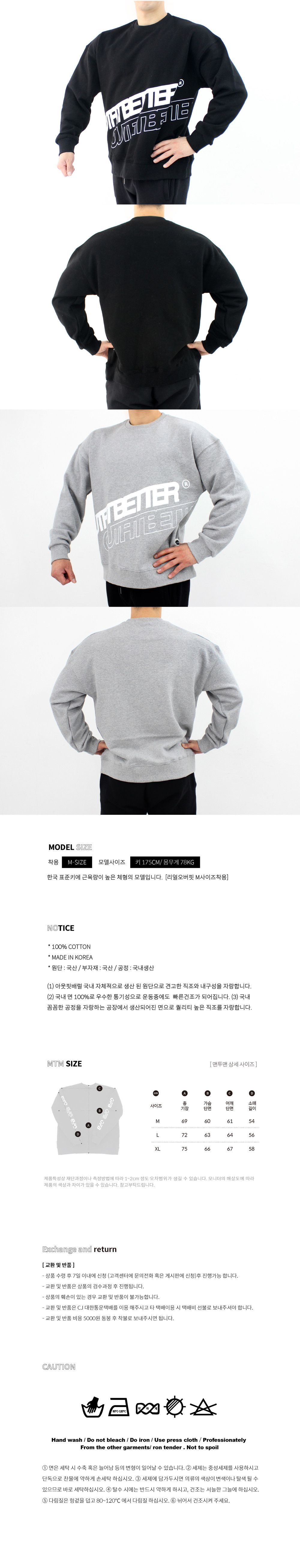 면 100프로 솔리드 스웨트셔츠 맨투맨