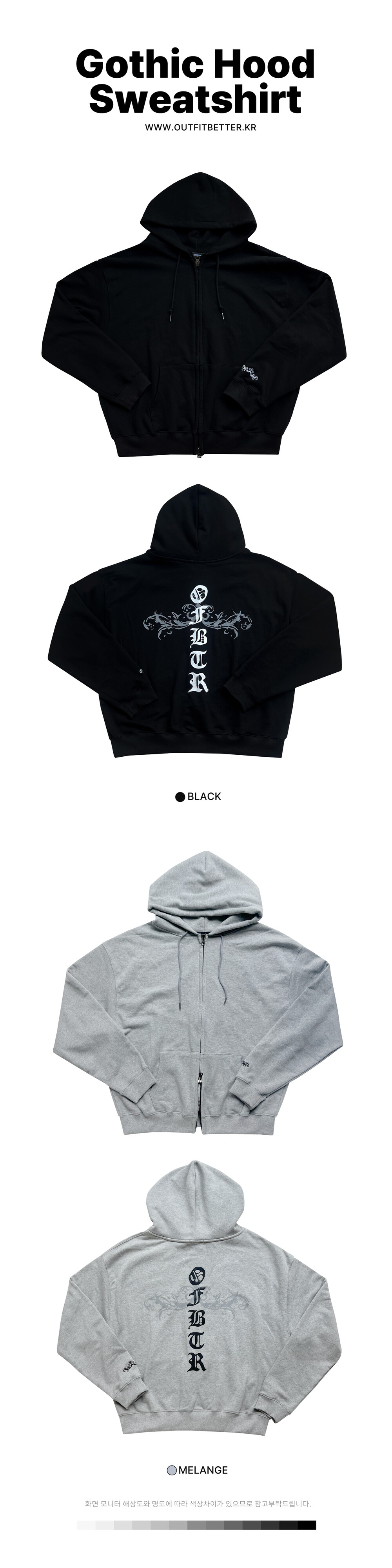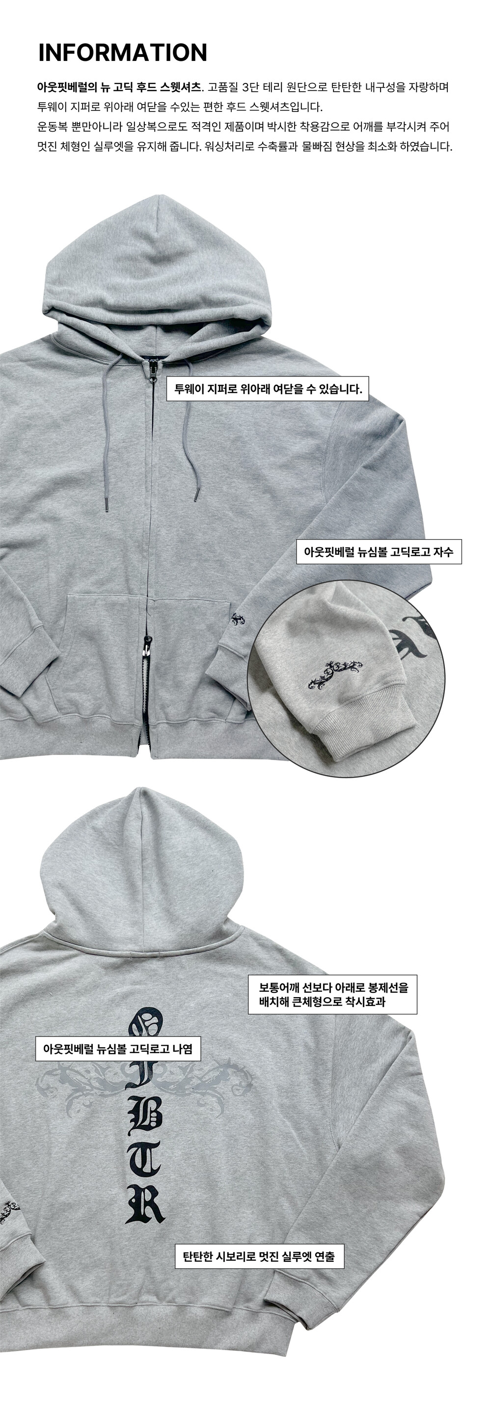 NEW GOTHIC HOOD ZIP-UP SWEATSHIRT-BLACK