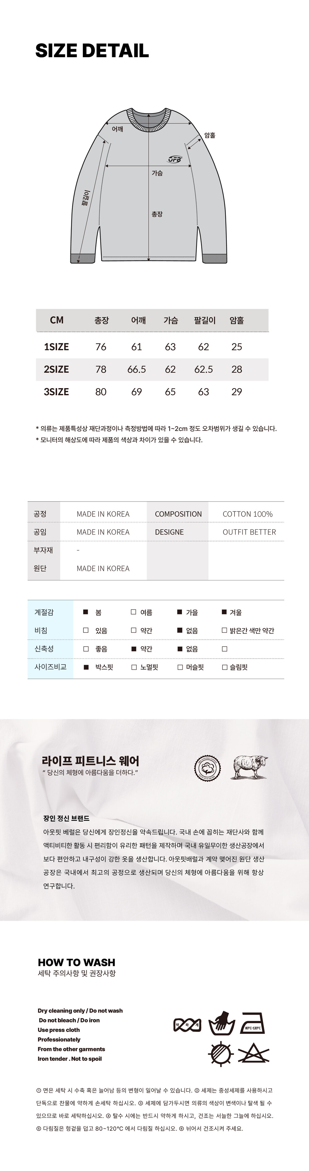 1사이즈 : 신장 165-175 / 체중 70-80kg